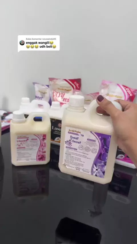 Membalas @novawinda05 kamu beli nya di mana kak beb?klo belinya dikeranjang kuning aku aseli sih wangi parah apalagi yg sweet secret ‼️ #pelicinpakaian #pelicinsetrika #pelicinsetrikalaundry #wibgajian #parfumlaundry