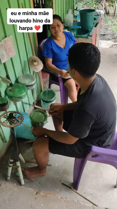 eu e minha mãe louvando hino da harpa ❀️ #bateria #Gospel