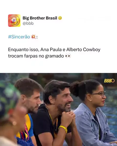 Não basta o Sincerão no ao vivo, a treta se estendeu pro intervalo também! Ana Paula e Alberto Cowboy bateram boca, trocando acusações de covardia. Segundo o brother, Ana Paula "fez propaganda" para ir ao paredão com Babu, mas se acovardou. #BBB26 #redebbb #bigbrotherbrasil #sincerao #treta
