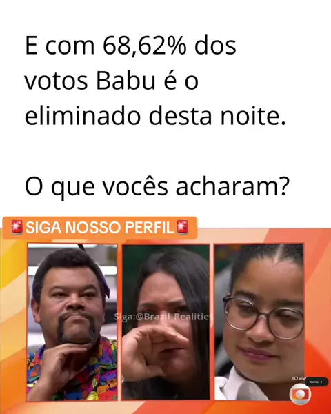 Uni-duni-tê... o escolhido foi VOCÊ! « Babu Santana é o eliminado do #BBB26 desta terça-feira (10). O brother deixou a casa com 68,62% dos votos. Santana enfrentava Milena Moreira e Chaiany Andrade na berlinda e acabou sendo escolhido pelo público para deixar a casa. Gostaram? #redebbb #bigbrotherbrasil #eliminado #paredao