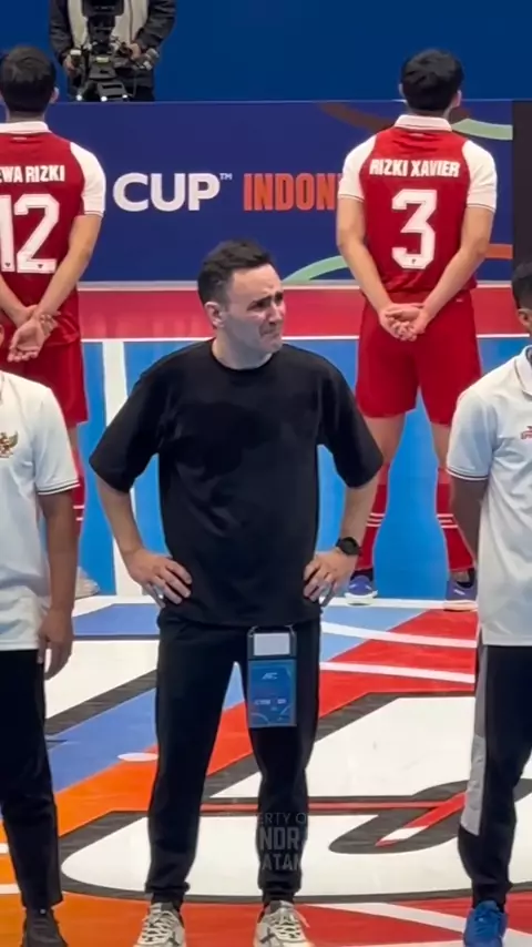 Pelatih Timnas Futsal Indonesia, Hector Souto terlihat meneteskan air mata saat mendengarkan para suporter menyanyikan lagu tanah usai laga menghadapi jepang . #SnackStyle #trendsports #timnasindonesia #futsal #fyp