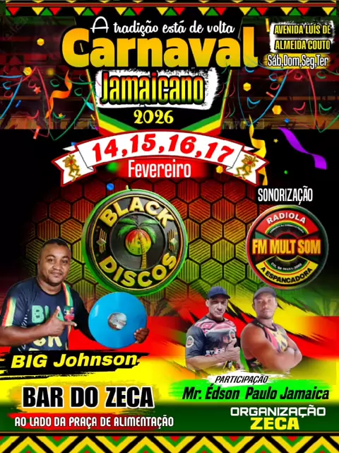 CARNAVAL JAMAICA NA AVENIDA LUIS DE ALMEIDA COUTO COM EQUIPE BLACK DISCOS DE VIANA MARANHÃO