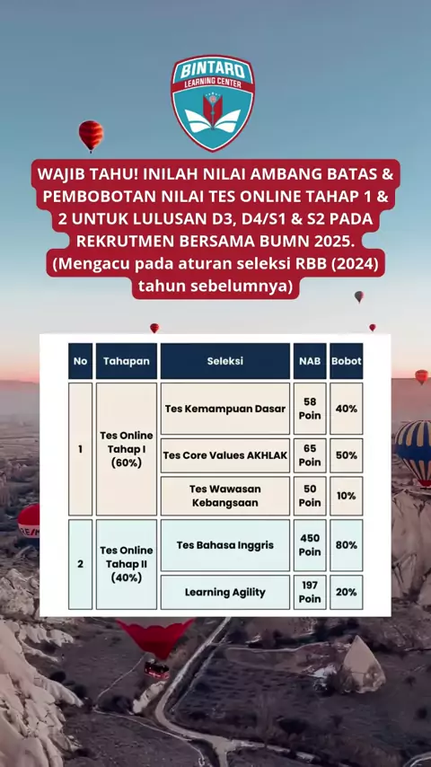 Halo Pejuang Karir BUMN 2025!๐Ÿ‘‹๐Ÿป RBB 2025 udah ada hilal nih! Gimana kalo kalian mulai persiapkan semuanya dari sekarang? Yuk! Ciptakan peluang kalian lulus Rekrutmen Bersama BUMN 2025 dengan curi start belajar soal-soal tes seleksi di bimbel terbaik di indonesia by BINTARO LEARNING CENTER. Daftar sekarang deh! 2025 akan menjadi tahun diwujudkannya impian. Aamiin๐Ÿคฒ๐Ÿป๐Ÿ˜‡ #bumn #bumnuntukindonesia #bumninfo #bumn2025 #bumnkarir #bumnhadiruntuknegeri #solabumn #pendaftaranbumn #pendaftaran bumn sa...