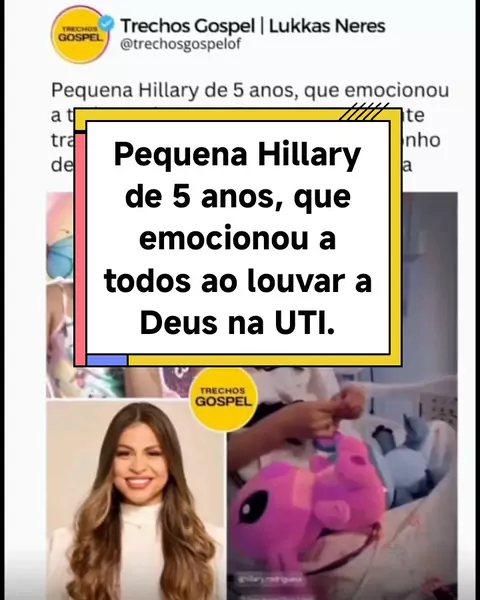 Pequena Hillary de 5 anos, que emocionou a todos ao louvar a Deus na UTI durante tratamento contra leucemia, tem o sonho de conhecer a cantora Valesca Mayssa. #valescamayssa #oraรงรตes #EstrelaDeFamilia #ultra10kavis #musicacristiana