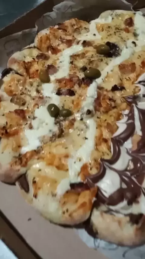 pizza 🍕! doce e salgada. borda caracol recheada de chocolate ao leite. @PIZZARIAAGARAGEMDELIVERY arcoverde PE. za 8799144 4005 #sejacriador #pizza #pizzaria #culinária #arcoverde