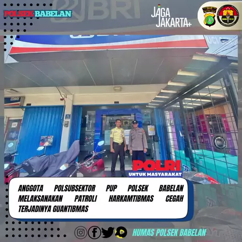 Anggota Polsubsektor PUP Aipda Billy Chandra melaksanakan patroli sentuh sektor Perbankan Bank/ATM BRI Unit Pondok Ungu Permai, cegah terjadidnya Guantibmas Curat, Curat dan Curanmor di Ruko KTW Taman Asri Rw 031, Kel. Bahagia, Kec. Babelan, Kab. Bekasi. Jumat (13/03/2026) @divisihumaspolri @Poldametrojaya_ @Kapolres_Bekkab @humaspolresmetrobekasi #divisihumaspolri #kapoldametrojaya #humas.poldametrojaya #humaspolresmetrobekasi #kapolres.bekasikabupaten .polri