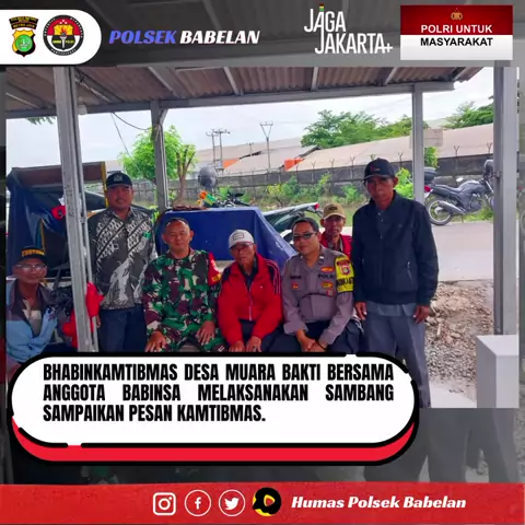 Dalam rangka menjaga kondusifitas kamtibmas dan mempererat hubungan silaturahmi dengan masyarakat, Bhabinkamtibmas Desa Muara Bakti Aipda Takim bersama Anggota Babinsa, melaksanakan kegiatan kunjungan sambang/DDS (Door to Door System) di Kampung Pasar Mas Rt 10/05, Desa Muara Bakti, Kecamatan Babelan, Kabupaten Bekasi. Selasa (03/03/2026). "Kegiatan sambang ini menjadi sarana komunikasi dan kedekatan antara Polri dengan masyarakat. Harapannya, masyarakat semakin sadar akan pentingnya menjaga ke