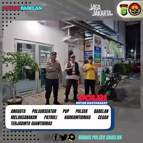 Dalam rangka menjaga stabilitas keamanan dan ketertiban masyarakat (Kamtibmas), Bhabinkamtibmas Desa Babelan Kota Aipda Jajang Tendi bersama Anggota Babinsa melaksanakan Sambang Dan pembinaan Siskamling serta Sosialisasikan Layanan Call Center Polri 110 di Kampung Pulo Asem Rt 008/006, Desa Babelan Kota, Kecamatan Babelan, Kabupaten Bekasi. Jumat Malam (27/02/2026). Source : @Divhumaspolri @HumasMetroBks @Kapolres_Bekkab @Poldametrojaya_ #divisihumaspolri #kapoldametrojaya #humas.poldametroj