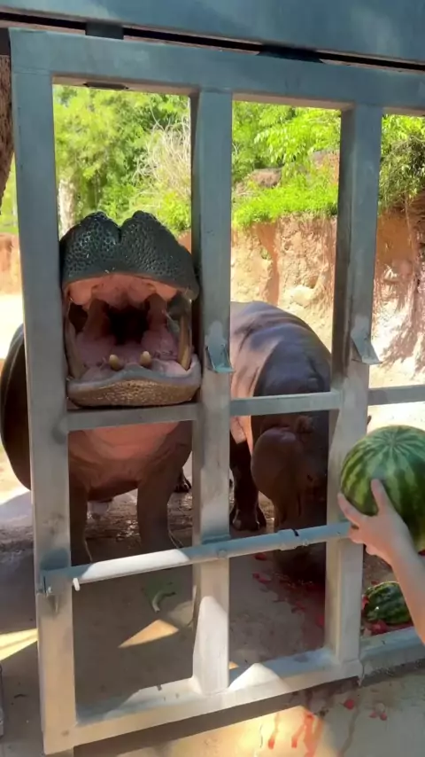 O hipopótamo come melancia.