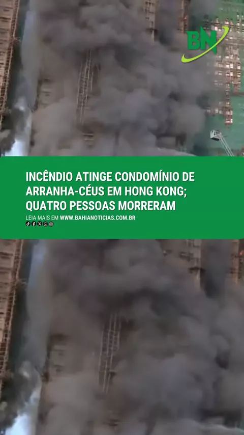 Um incêndio de grandes proporções atingiu diversos arranha-céus de um complexo residencial em Hong Kong nesta quarta-feira (26), resultando na morte de quatro pessoas e deixando ao menos três feridos, segundo confirmaram as autoridades locais. 📲 Leia a matéria completa clicando no link dos stories do @bahianoticias 📷 Reprodução