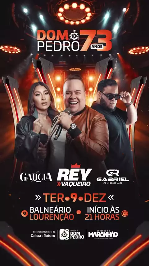 🎉🔥A MAIOR E MELHOR FESTA DE ANIVERSÁRIO DA HISTÓRIA DE DOM PEDRO VEM AÍ! Anota na agenda: dia 9 de dezembro, no Balneário Lourenção, a gente vai amanhecer o dia em GRANDE estilo! No palco, três gigantes pra fazer Dom Pedro tremer: 🎤 Rey Vaqueiro (@reyvaqueiro ) 🎶 Galícia (@galiciacruzz ) 🎸 Gabriel Rabelo (@gabrielrabelooficiall ) Vai ser inesquecível!