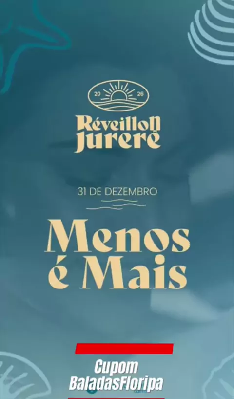 REVEILLON JURERÊ 2026 – MENOS É MAIS | INGRESSOS COM DESCONTO 📅 31 de dezembro de 2025 📍 Jurerê Internacional – Florianópolis/SC ✨ Prepare-se para a virada mais desejada do Brasil! Menos é Mais vai comandar o palco e trazer muita música, energia e emoção para começar 2026 com estilo. 🍹 Open Bar Premium 🍴 Open Food 🏖️ Localização privilegiada à beira-mar 🎉 Experiência exclusiva de Ano Novo em Floripa 🎟 Use o cupom BALADASFLORIPA e garanta seu ingresso com vantagens especiais! 👉 Ent