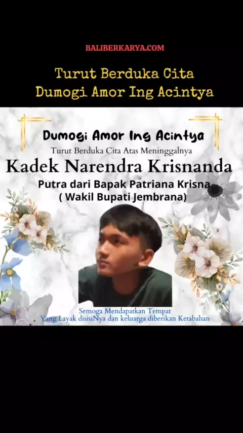 Seluruh Redaksi dan Pimpinan Baliberkarya.com Turut Berduka Cita yang Mendalam Dumogi Amor Ing Acintya, Kadek Narendra Krisnanda, Putra dari Wakil Bupati Jembrana, Patriana Krisna. Semoga Mendapatkan Tempat yang Layak disisiNya dan Keluarga Diberikan Ketabahan #beritaduka #berdukacita #kadeknarendrakrisnanda #wakilbupati #jembrana #patrianakrisna #meninggal #kecelakaan #mendoyo #negara #bali #awk #niluhdjelantik # ゚viral #viral #virall #bupati #tamba #bupatitamba