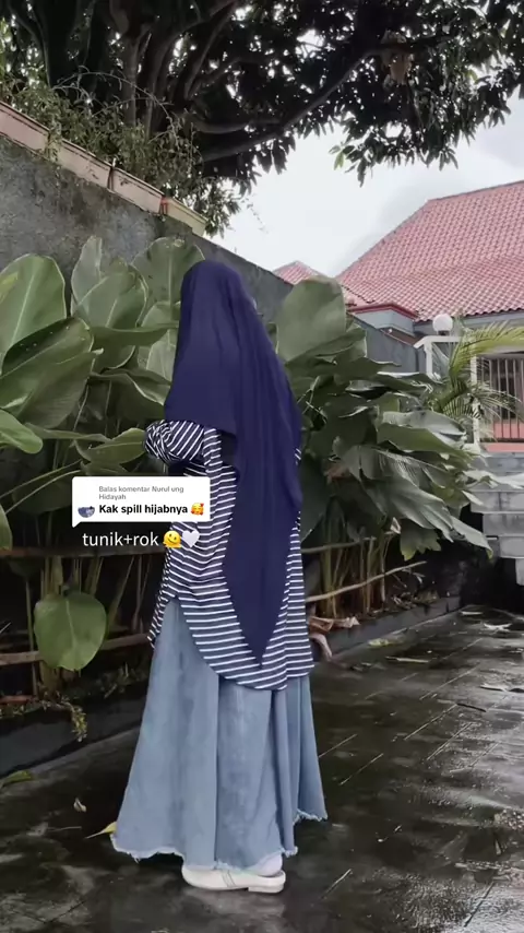 Membalas @Nurul ung Hidayah cakepp bgtt mix and match tunik stripe, rok jeans, Fk lancip 😙 #rokjeans #tunikstripe #atasanstripe #frenchkhimar #khimarbandana