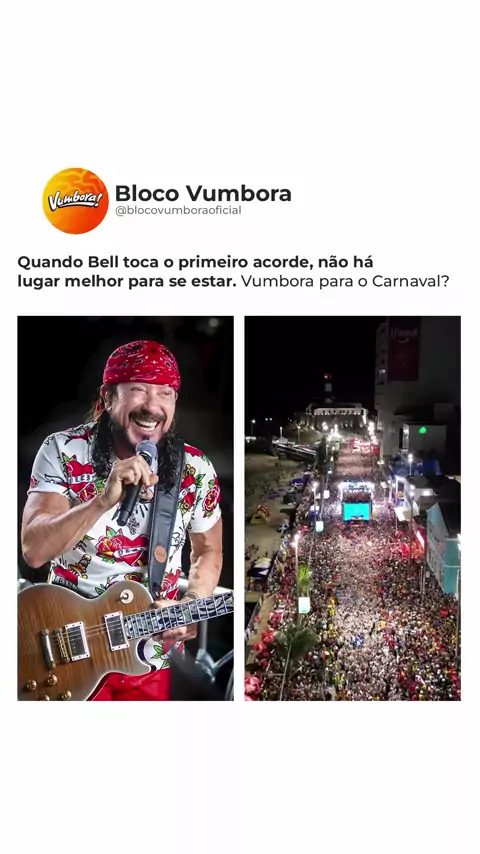 Quando Bell toca o primeiro acorde, a magia começa! ✨ Não existe lugar melhor para estar—é sentir o coração bater no ritmo da folia! 🎶 Vumbora pro Carnaval? 🔥 #BlocoVumbora #BellMarques #Nucleo55 #CarnavalComBell