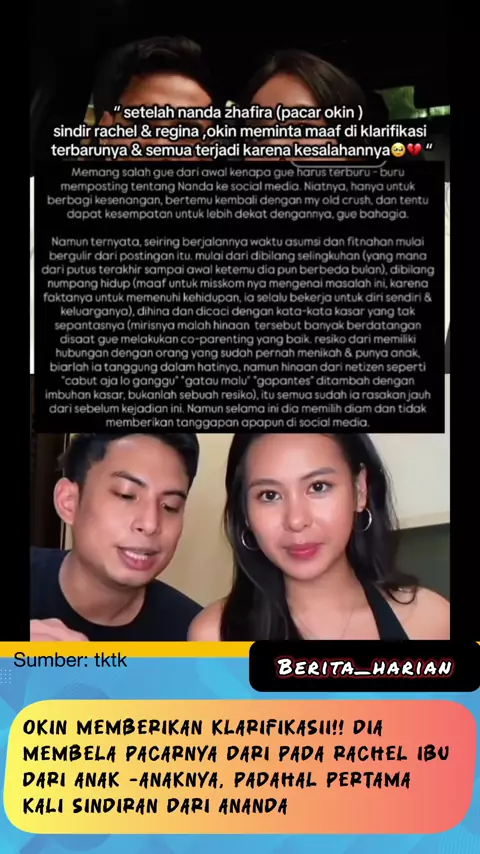 Okin membuat klarifikasi💔 #okin #RachelVennya #selebgram #Artis #gosip