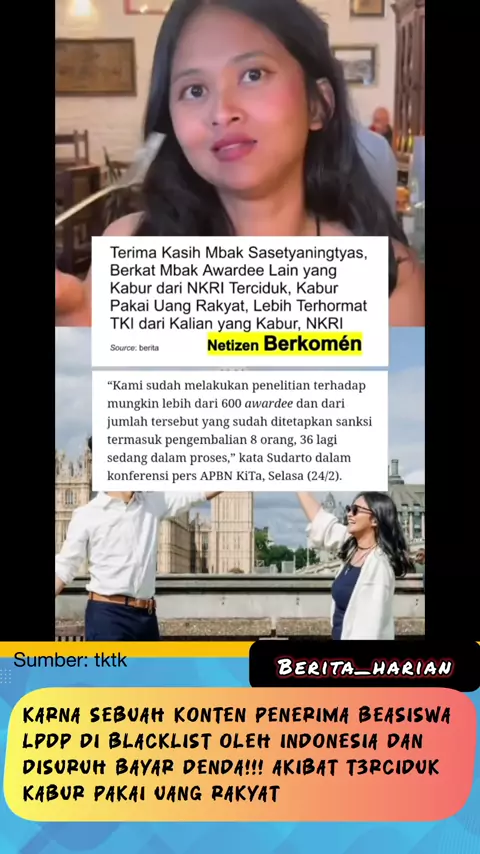 Terimakasih karna konten mba jadi t3rciduk semua penerima beasiswa LPDP #uangrakyat #denda #beasiswa #berita #indonesia