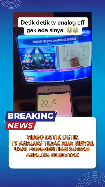 Seorang warga mengabadikan detik-detik siaran televisi analognya hilang sinyal