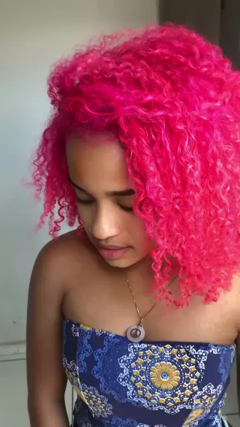 Cabelo crespo rosa bem neon 🩷 #cabelo #Crespo #Cachos #cabelocolorido #cabelorosa