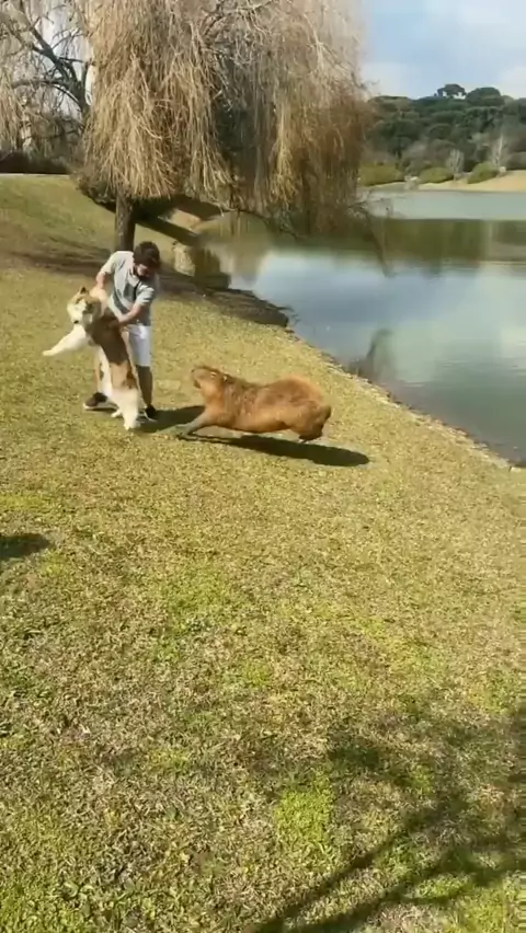 Essa foi por pouco! #cachorro #briga #capivara #natureza #videosinteressantes