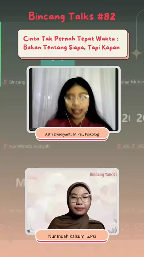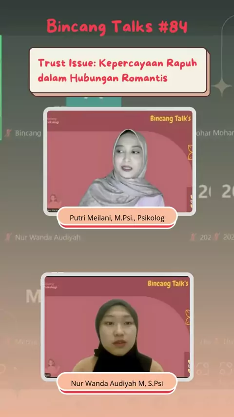 Salah satu cuplikan Berbincang Talk's #82 Cinta tak pernah tepat waktu bukan tentang siapa, tapi kapan dari kak @astridwidiyanti bersama kak @nur.indah_ menjadi moderator, yang berlangsung pada tanggal 5 Maret 2025 Tag teman kalian dong 😁 (SHARE & SAVE THIS POST) _____ # #bincangpsikologi # #psikologi #2025 #kelas #webinar #girls #perselingkuhan #selingkuh #toxicrelationships #toxic #trustissue #trust #gaslighting #mental #MentalHealth #mentalhealthmatters # #enterta...
