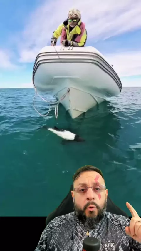 Filhotinho de orca perdido busca ajuda de pescador? #animal #faunamarinha #orca #baleiaorca #filhotedeorca