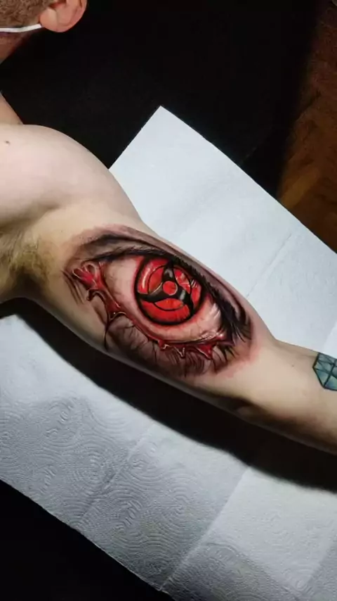 Magenkyou Sharingan 🔥 Artista: Rafael 13 ⭐️ BLACK NIMBUS TATTOO🇧🇷🇯🇵 #naruto #sharingan #uchiha #chapeudepalha