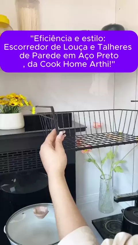 Escorredor Organizador Seca Louça Pratos Copos 32,5X31X22,5CM Talheres de Parede Dobrável Aço Preto Cook Home Arthi