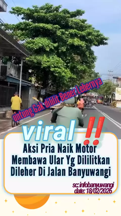 aksi pria berkendara dijalan sambil membawah ular yg dililit kelehernya dibanyuwangi !! #snackvideo #berita #lucu #trending #kocak