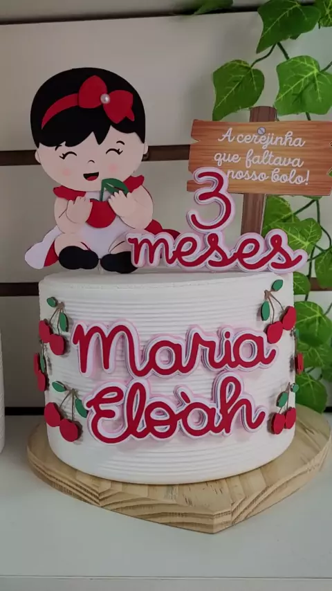 topo de bolo bebê cerejinha... Aquele cheio de detalhes...🍒❤️🥰 #topodebolo #mesverario #bolocerejas