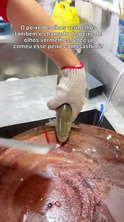 Este tipo de peixe é chamado de peixe de olhos vermelhos, também conhecido como peixe de olhos vermelhos, que é raro em Guangdong. Todos eles são transportados de Guangxi para fazer sashimi.