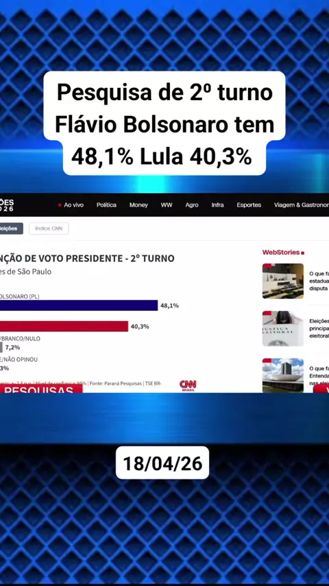 Datafolha mostra Flávio Bolsonaro à frente de Lula em cenário de 2⁰ turno. #noticias #politica