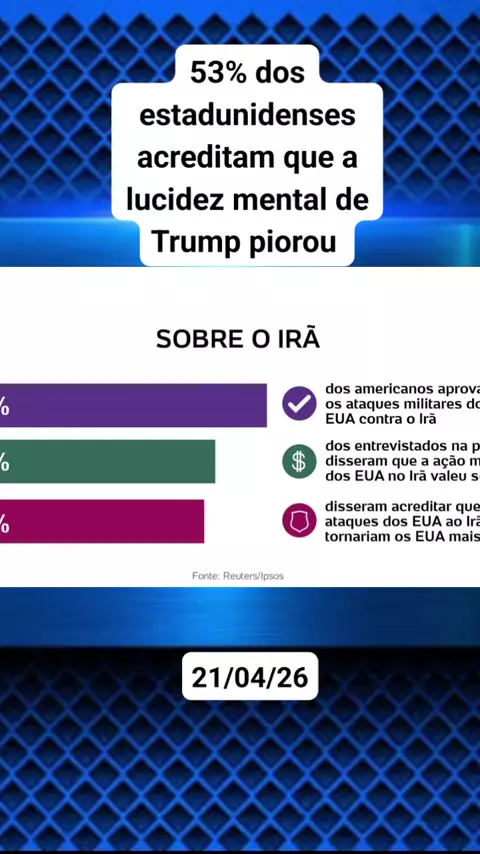 Rejeição a Trump chega a 62% em meio a guerra no Irã. #noticias #politica