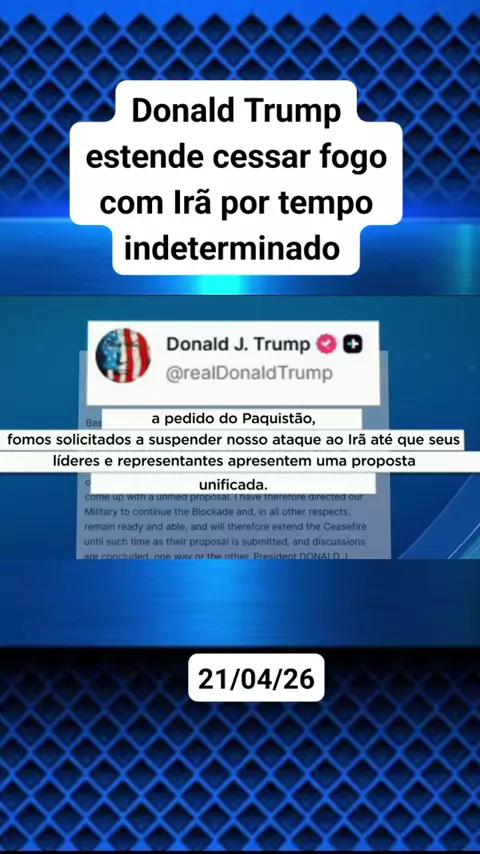 Donald Trump prorroga cessar-fogo com Irã até que Teerã apresente proposta de paz. #noticias #politica