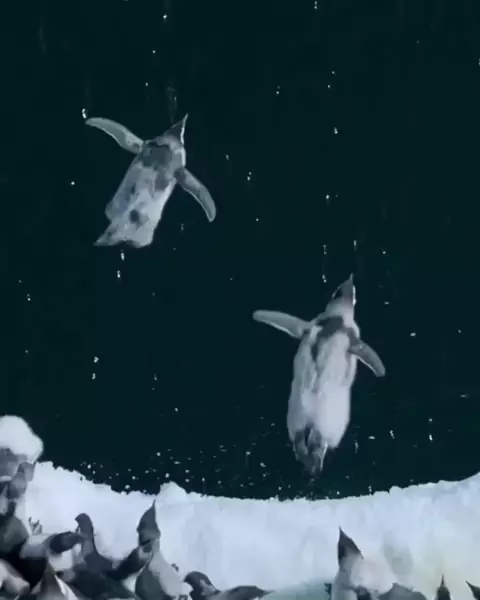 Filhotes de pinguins saltam de penhasco na Antártida para nadar pela primeira vez #animais #biologia #animalia
