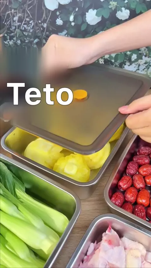 Se a geladeira em casa está limpa e arrumada, use esta caixa de aço inoxidável. Legumes e frutas frescas podem ser selados e preservados, e podem ser aquecidos diretamente por um forno de indução.