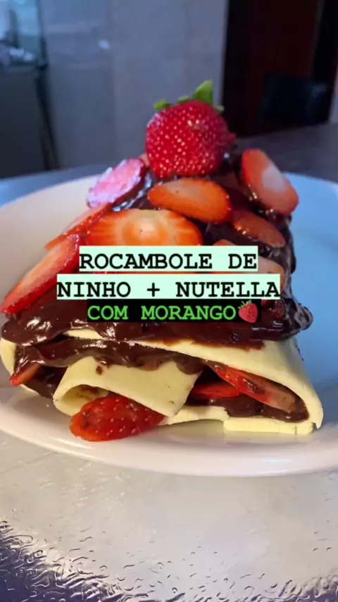 Sabor Inigualável: Rocambole de Ninho com Nutella e Morango" Descubra o segredo por trás desse rocambole de ninho divino, recheado com Nutella e morango. Prepare-se para uma explosão de sabores! 🍓✨ Ingredientes 1 bandeja de morango 1 colher de manteiga 3 colheres de cacau em pó 2 caixa de leite condensado 1 pacote de leite @ninho 2 colheres de @nutella 1/2 caixinha de creme de leite Ninho: coloque o leite condensado aos poucos até obter um ponto firme que não grude nas mãos.