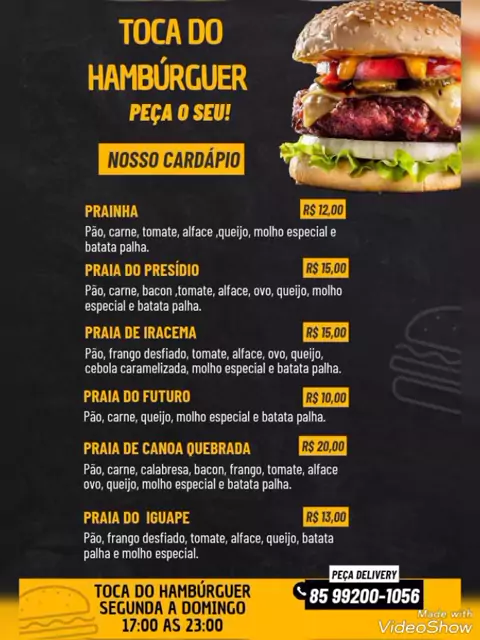 Toca do hambúrguer 85 99200 1056 centro de Aquiraz atendimento das 18:00 as 23:30 (somente delivery) #aquiraz #ceara #divulgar #prainha #hamburguer
