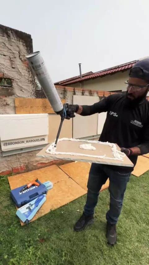 Pra testar 🚀Colei todas as placas que consegui com a PU75 fixa placas 🚀🥇✅ Alto rendimento e resistência . #construçao #gesso😍 #eps7 #pedreiros #arquitetura