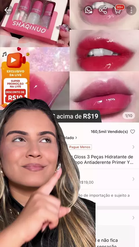 Testei o trio de glosses mais hypado da Shopee đŸ€©đŸ˜ #testandomake #reviewdemake #review #comprasdashopee #gloss