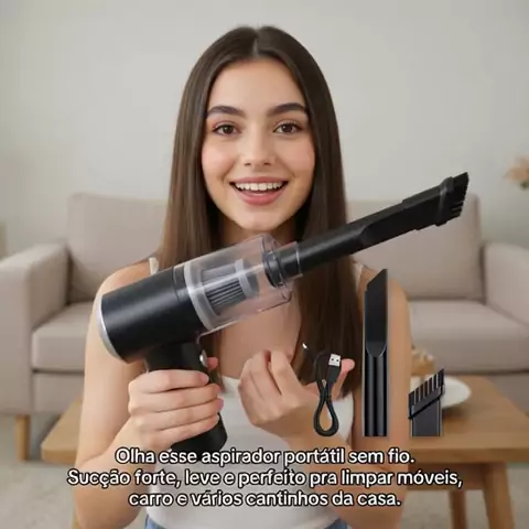 Aspirador de pó portátil e sem fio, perfeito para limpezas rápidas no dia a dia. ✨ Leve, prático e com sucção forte, ajuda a limpar sofá, carro, mesa, tapetes e cantinhos difíceis da casa com muito mais facilidade. #maisviews #KwaiShop #promoçao