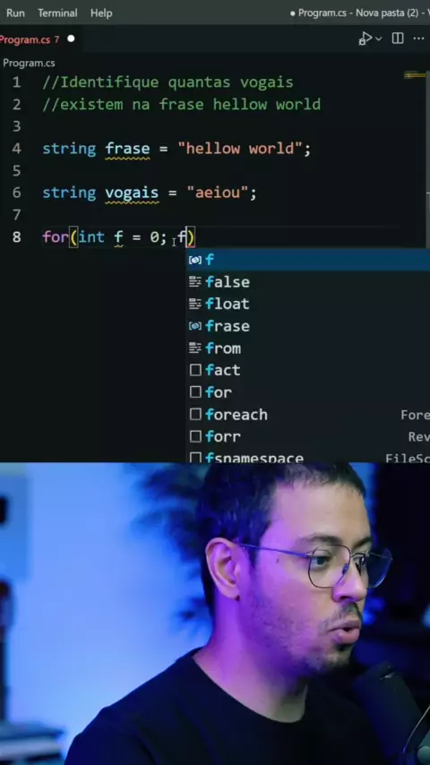 Identifique quantas vogais existem na frase hellow world #javascript #programaçao #desenvolvedor #desenvolvedorweb #programador #csharp