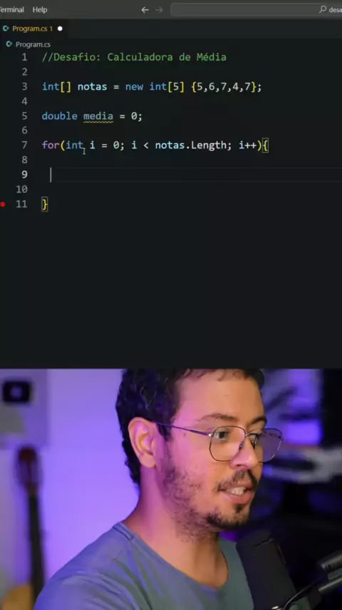 Desafio: Calcule a média de 5 números. Importante: Existem várias maneiras de solucionar um mesmo problema. No entanto, meus vídeos buscam uma solução didática e genérica, que possa ser compreendida por pessoas com diferentes níveis de conhecimento.#programador#desafios#codigo#desenvolvedorweb#web#cursos #média