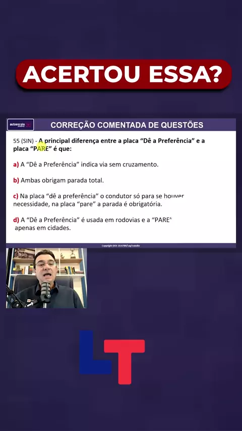 A principal diferença entre a placa “Dê a Preferência” e a placa “PARE” é que: #0055 #ronaldocardoso #legtransito #detran2026 LINK CONTEÚDO PARA PASSAR NO DETRAN https://www.autoescolaonline.net/pv-ead-teorico/ ► NOSSO → https://www..com/legtransito/channel/ ► CANAL LEGTRANSITO → @legtransito Entenda a Placa R-5b e Provas do DETRAN 2026​​