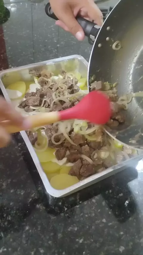 Batata recheada na travessa com Contra Filé 🤤 Ingredientes: 500g batata 1kg contra filé 500g queijo muçarela ralada 1 cebola cortada em rodelas Temperos a gosto 1 colher de margarina 1 colher de farinha de trigo 1 xícara de leite 1 colher de requeijão 1 creme de leite #batata #carne #Gastronomia #Comida #Receita