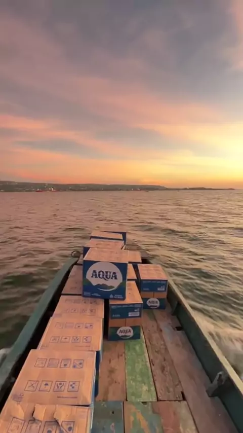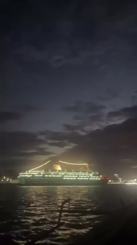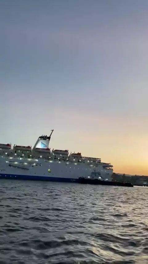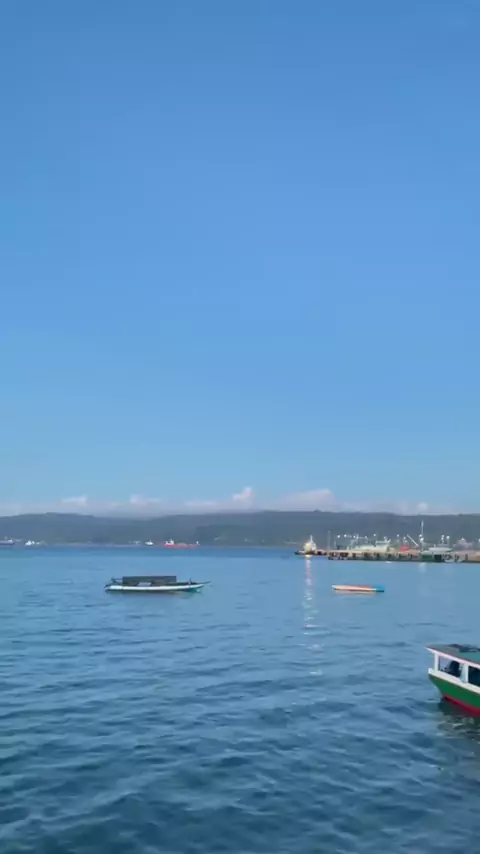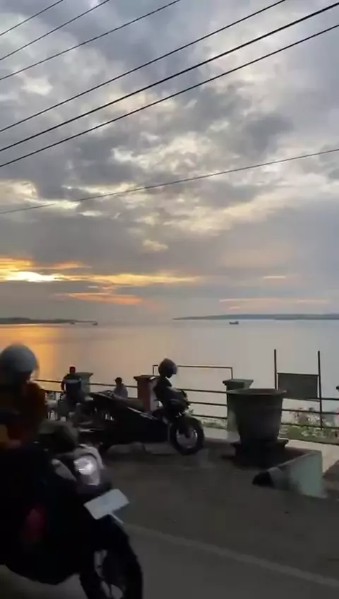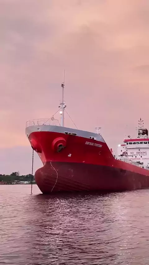 Pemandangan Kapal Besar Berlatar Sunset di tengah Laut Kota BauBau# #sunset #baubau