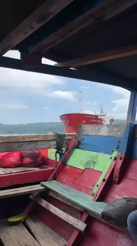 Penyeberangan Perahu kecil ke Kapal besar ditengah Laut# #kapalbesar #tengahlaut
