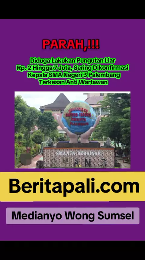 Diduga Lakukan Pungli 2 Hingga 7 Juta, Saat Dikonfirmasi Kepala SMA Negeri 3 Palembang Terkesan Anti Wartawan Palembang - Dugaan Pungutan Liar (Pungli) Rp.2 Hingga 7 Juta/tahun dan pungutan Bulanan Rp. 250 Hingga 300 Ribu/Bulan terjadi di SMA Negeri 3 Palembang. Hal ini disampaikan langsung oleh Aan Pirang selaku Ketua Lembaga Pembela Suara Rakyat (PSR) saat menggelar aksi damai sekaligus membuat Laporan dan Pengaduan (Lapdu) ke Polda Sumsel, pada Selasa (09/12). Dilansir dari media RADARcente...