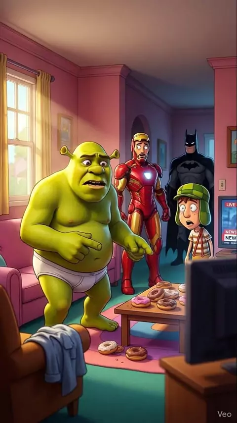 Roubaram a roupa do Shrek! 😱 #ShrekDeCueca #RoubaramARoupaDoShrek #Chaves #IronMan #batman