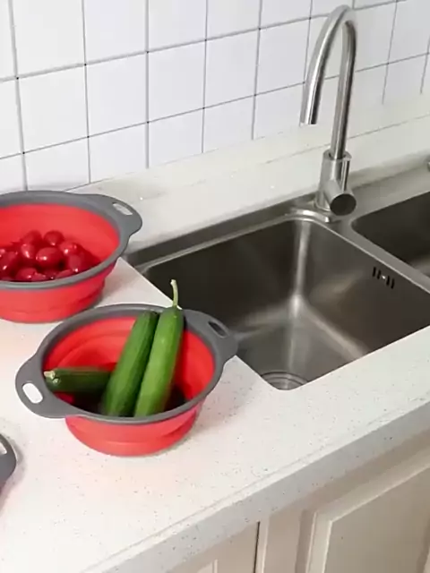 Escorredor Dobrável Retrátil de Silicone para Macarrão Massas Legumes Saladas e Frutas de Cozinha.